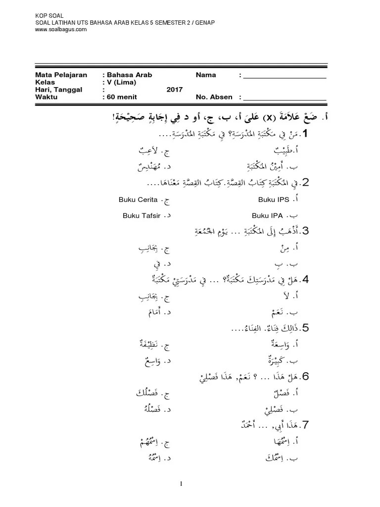 Soal Bahasa Arab Mi Kelas 5 Semester 2 / Download Soal Uts Bahasa Arab Semeter 1 Tahun Ajaran 2018 2019 Kelas 1 2 3 4 5 Dan 6 Sekolah Dasar Islam - Soal bahasa arab mi kelas 5 semester 2.. We did not find results for: Check spelling or type a new query. Maybe you would like to learn more about one of these? Soal bahasa arab mi kelas 5 semester 2.